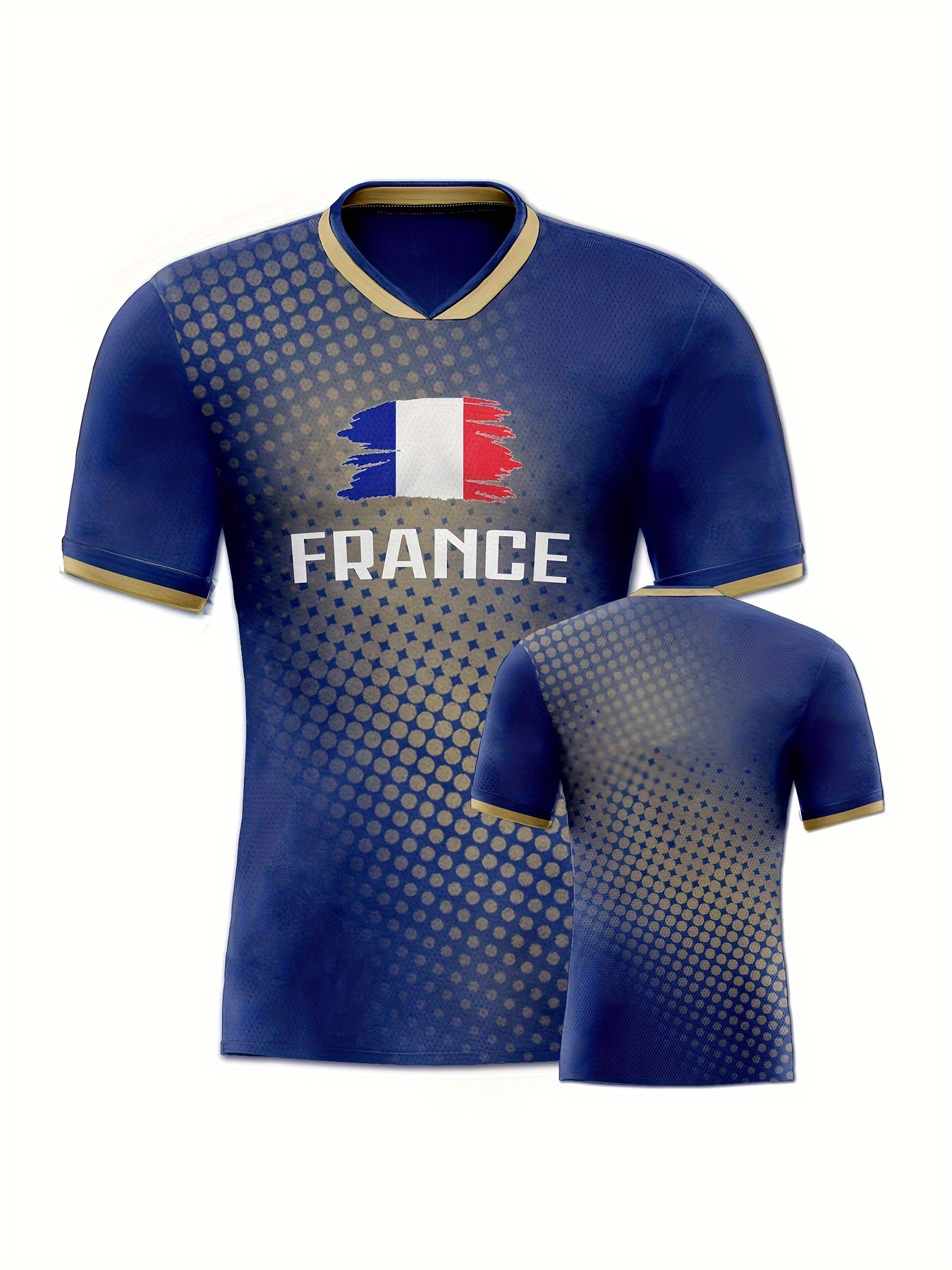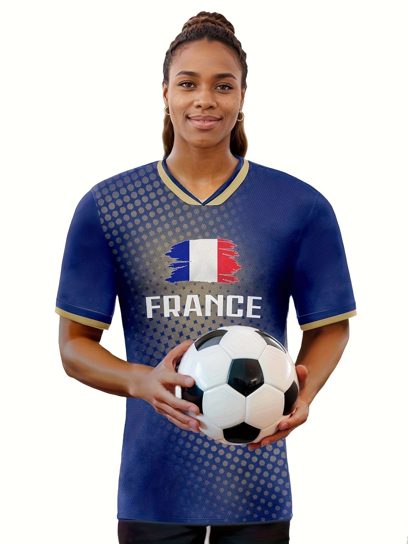 Women's Plus Size France Soccer Jersey - V-Neck, Short Sleeve, Breathable & Lightweight Polyester Sports Tee with French Flag Design, Moisture-Wicking, Perfect for Fans & Players, Soccer Accessories