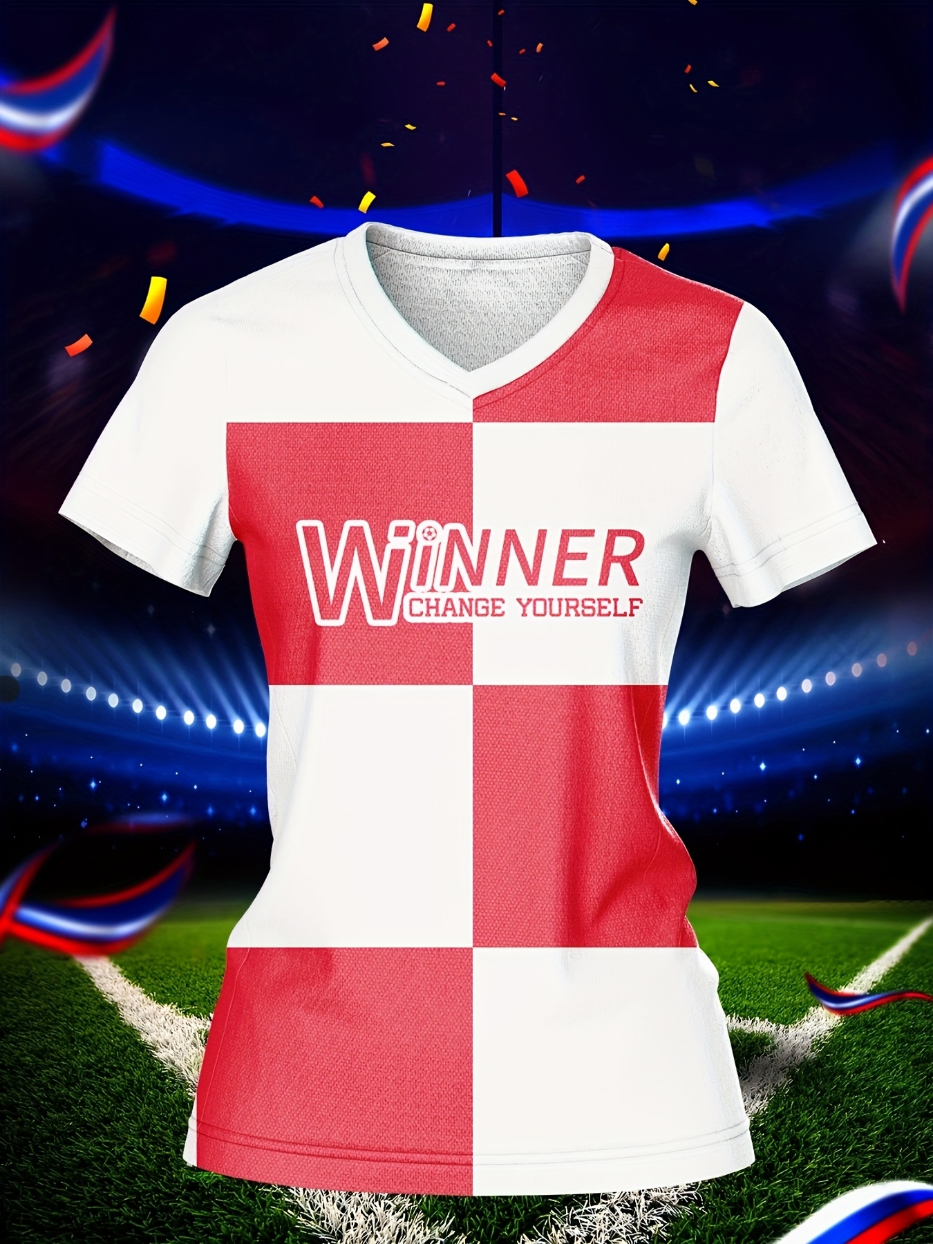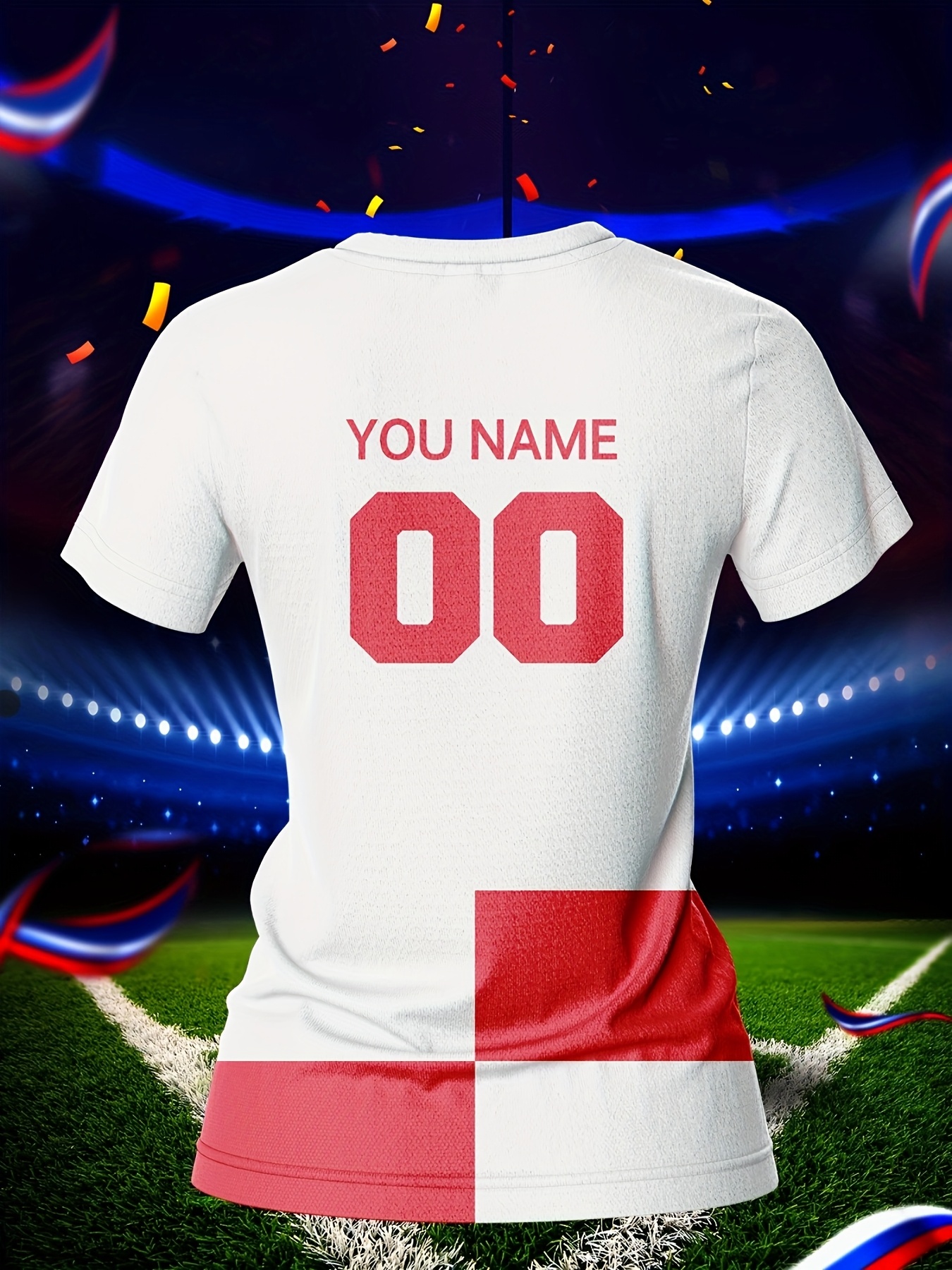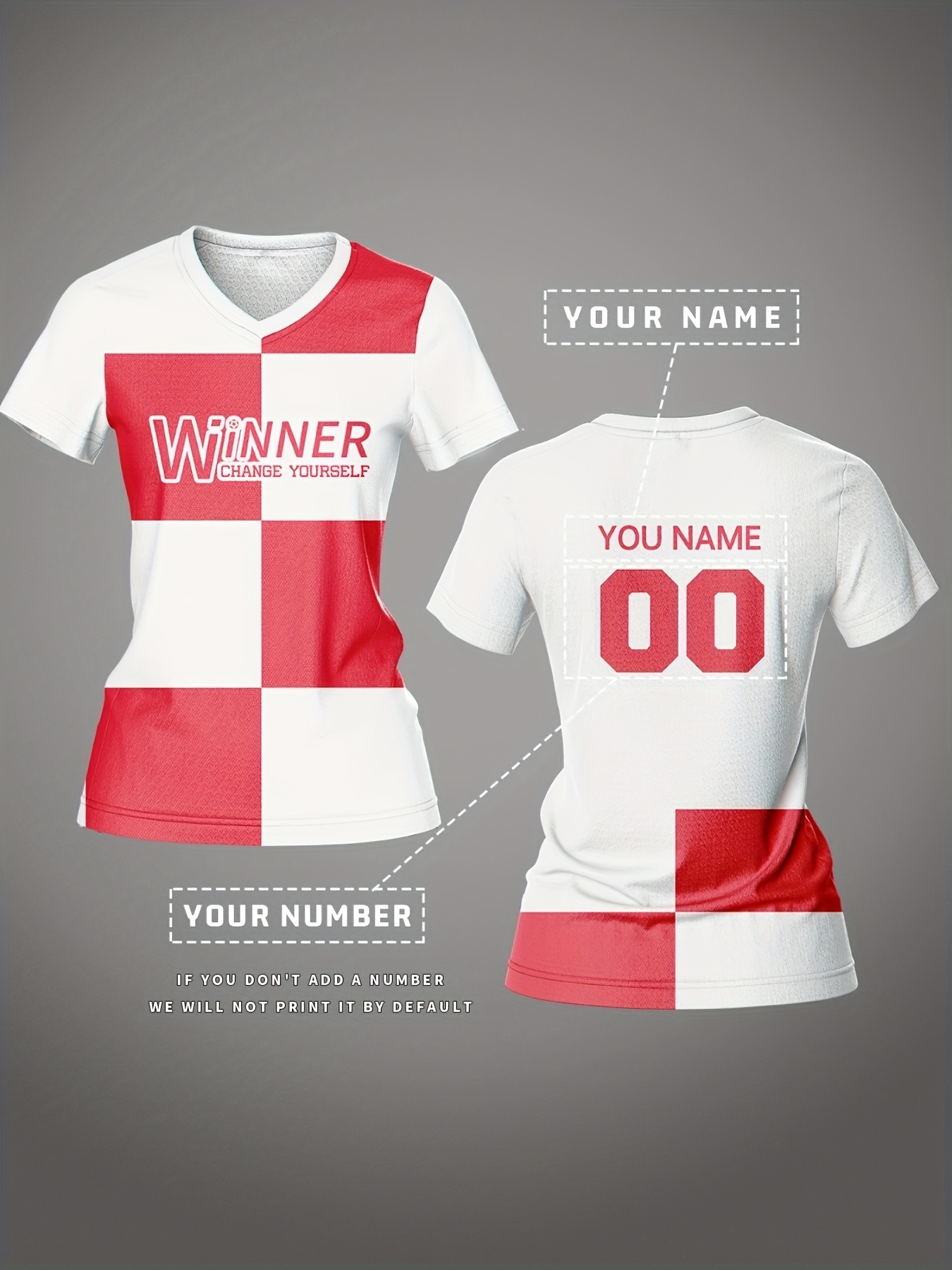 Customizable Women's V-Neck Soccer Jersey - Personal Name & Number, Breathable Polyester, Quick-Dry Sports Top for Team Training & Casual Wear, Sports Training Top | Customizable Soccer Shirt | Smooth Fabric Shirt