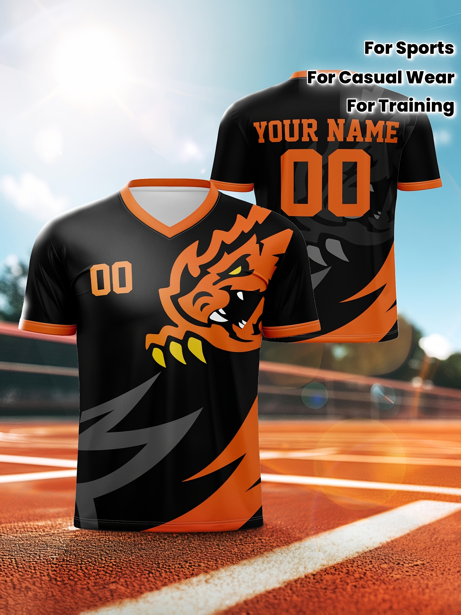 1pc Customizable V-Neck Soccer Jersey for Kids - 100% Polyester, Medium Stretch, All-Over Print, Personalized Name & Number, Regular Fit, for Boys & Girls, Ideal for Sports, Casual Wear, Training, Beach, Birthday - Spring/Summer/Fall