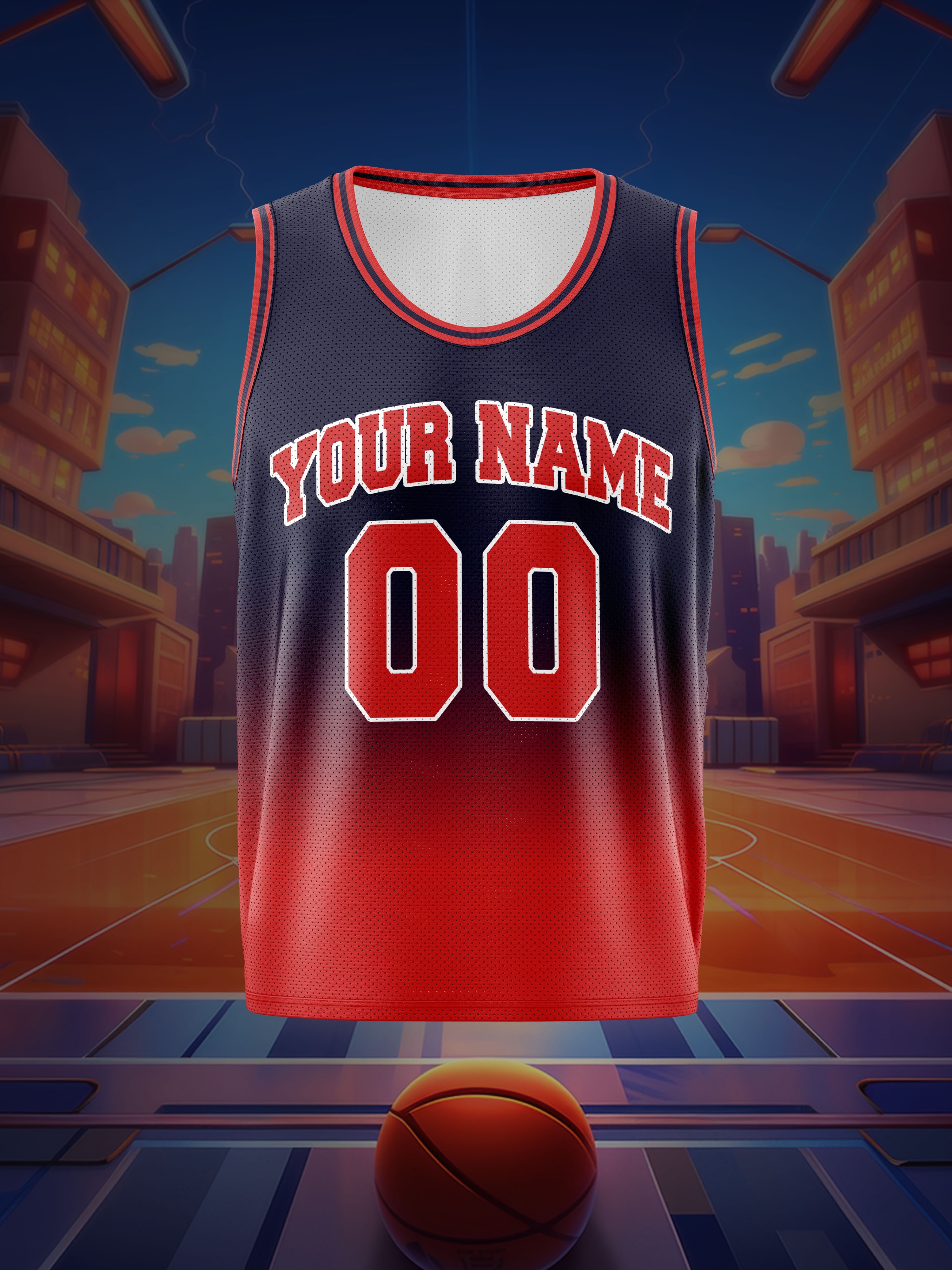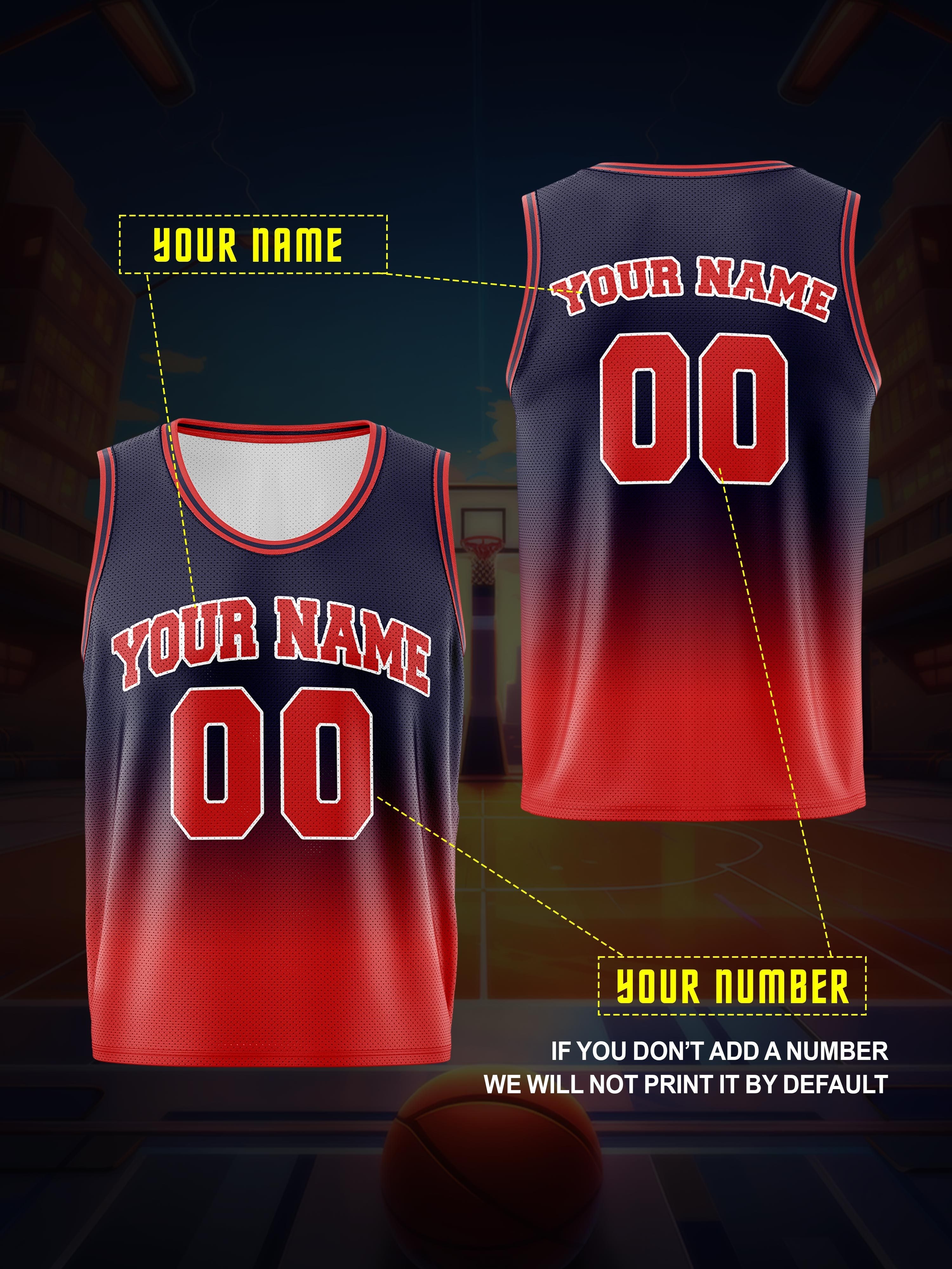 Youngsters' Customizable Basketball Vest - Your Name & Number | Navy Blue with Red Accents, Breathable & Comfortable Polyester, Ideal for Sports Training & Outdoor Fun, Machine Washable, Perfect for Outdoor