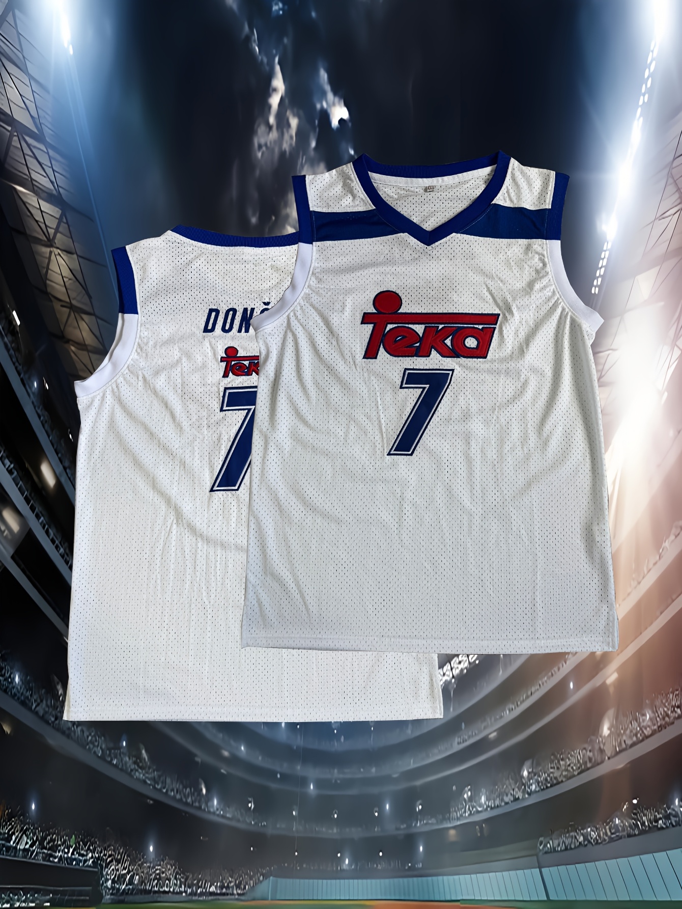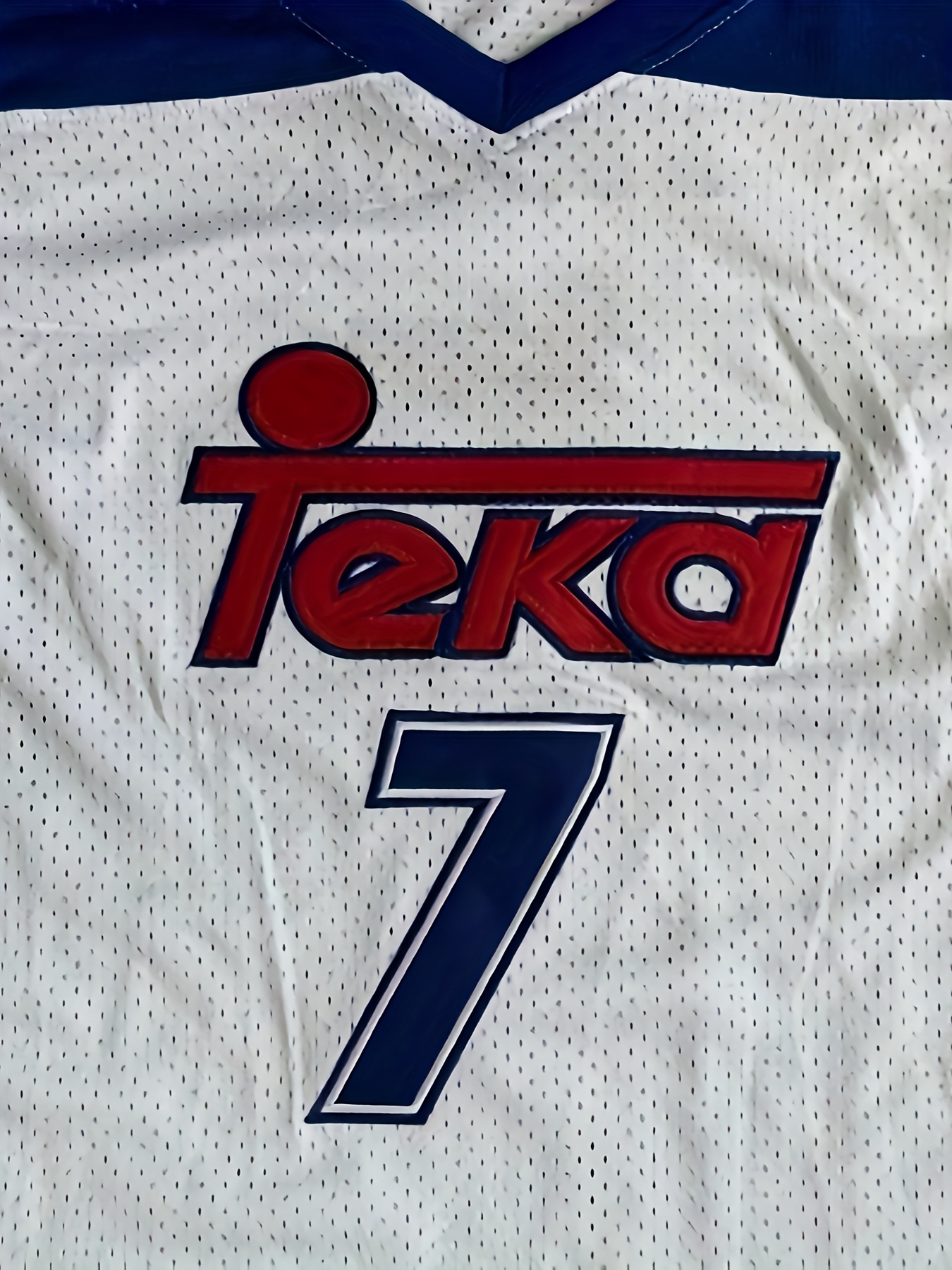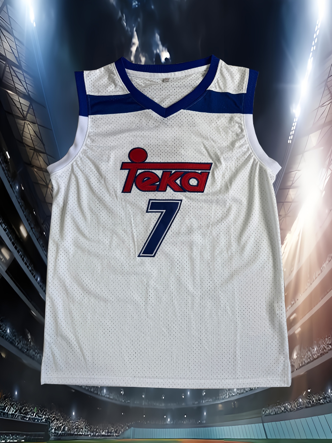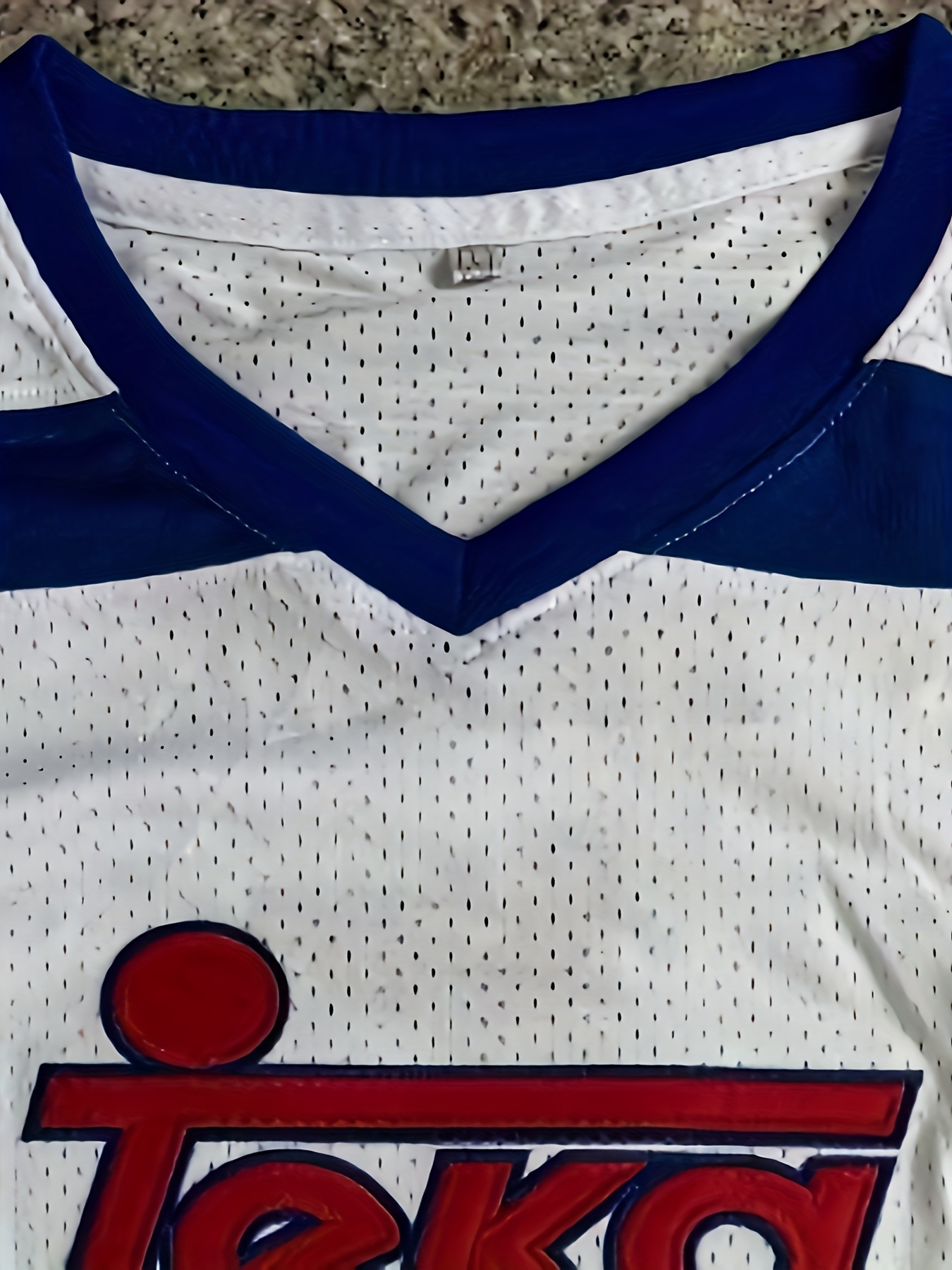 Men's #7 Basketball Training Jersey - Breathable Mesh Tank Top with V-Neck, Sleeveless Athletic Shirt for Sports & Casual Wear, Sizes S-3XL, White with Blue & Red Accents