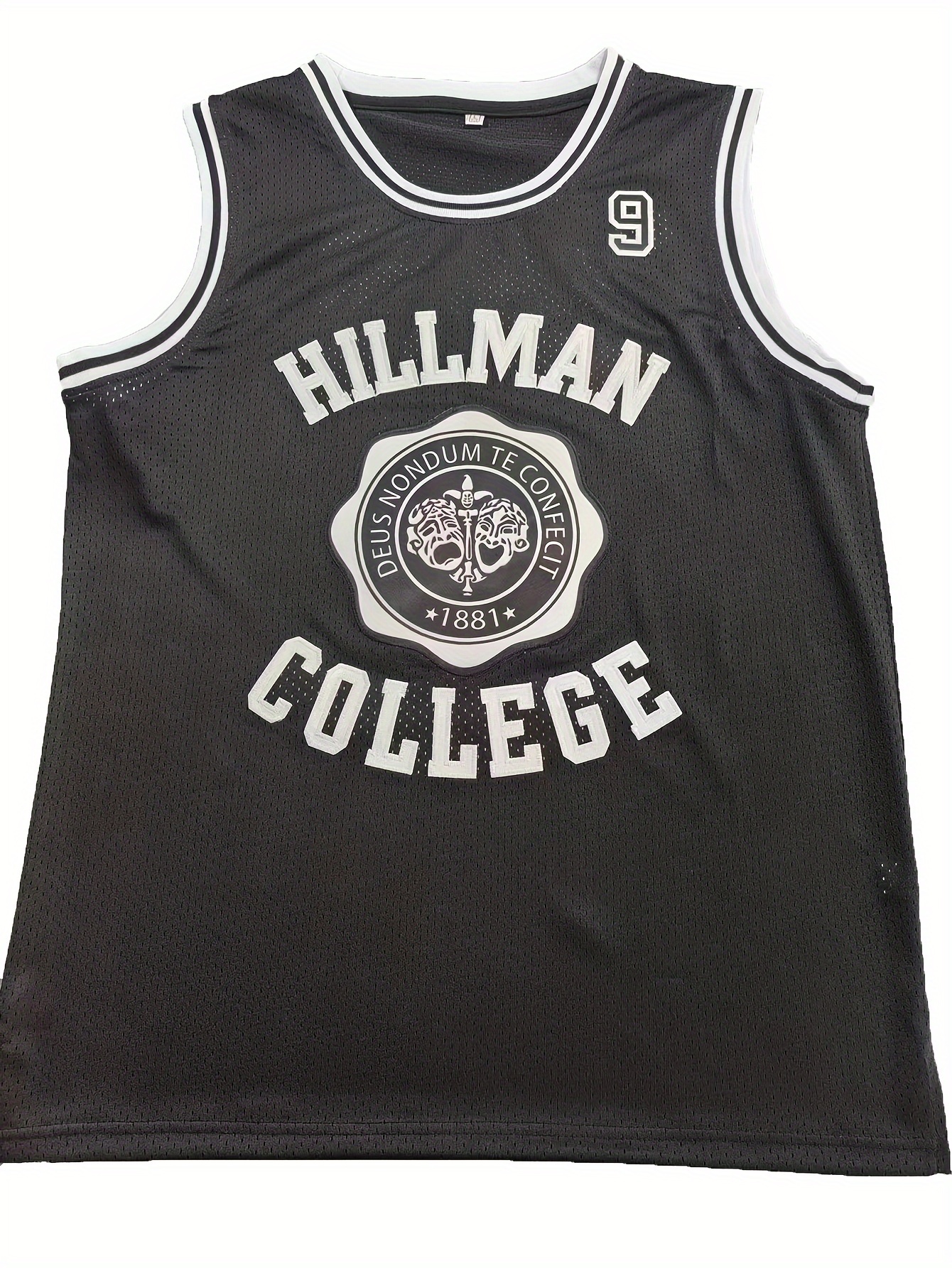 Men's #9 Embroidered Basketball Jersey - Retro Style Polyester Sports Shirt, Round Neck, Loose Fit, Black & White, S-3XL for Team Sports & Casual Wear