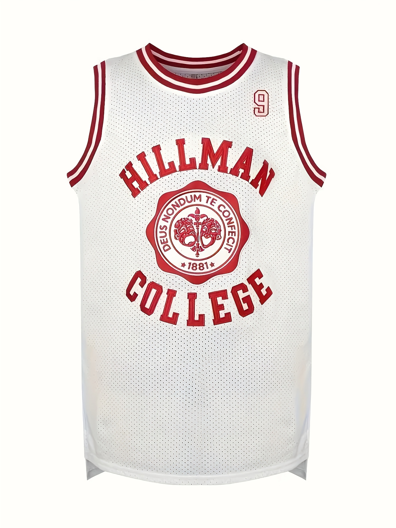 Men's Hillman College #9 Basketball Tank Top - Breathable, Moisture-Wicking Polyester with Letter & Number, Sleeveless Athletic Uniform for All Seasons