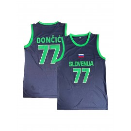 Men's Slovenia #77 Basketball Jersey - Navy Blue and Green, Breathable Polyester, Letter & Number, Loose Fit, Crew Neck, Ideal for Team Sports & Casual Wear, Team Apparel|Sleeveless Jersey|Durable Fabric