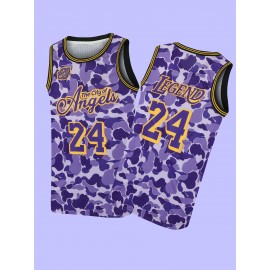 Men'S Embroidered Camo Basketball Jersey, Polyester & Spandex Blend, Crew Neck, Sleeveless, Breathable, Moisture-Wicking, Wrinkle-Resistant, Sports & Casual Style, with for Training, Games, and Parties
