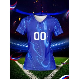 Customizable Women'S V-Neck Football Jersey, Polyester 100%, Quick-Dry Knit Fabric, Regular Length, All Over Print, Slight Stretch, Breathable for Training & Fitness, Spring/Summer/Fall Sports Top