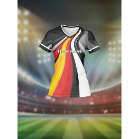 Custom Women's V-Neck Soccer Jersey - Personalized Name & Number, Breathable Quick-Dry Fabric, Team Training Fitness Casual Wear, Retro Street Futuristic Styles, Spring Summer Fall Sports Apparel, Soccer Accessories