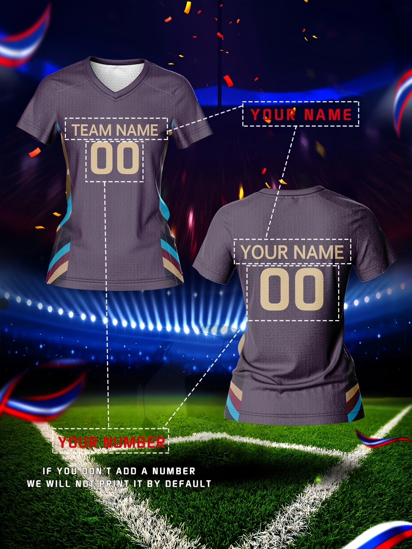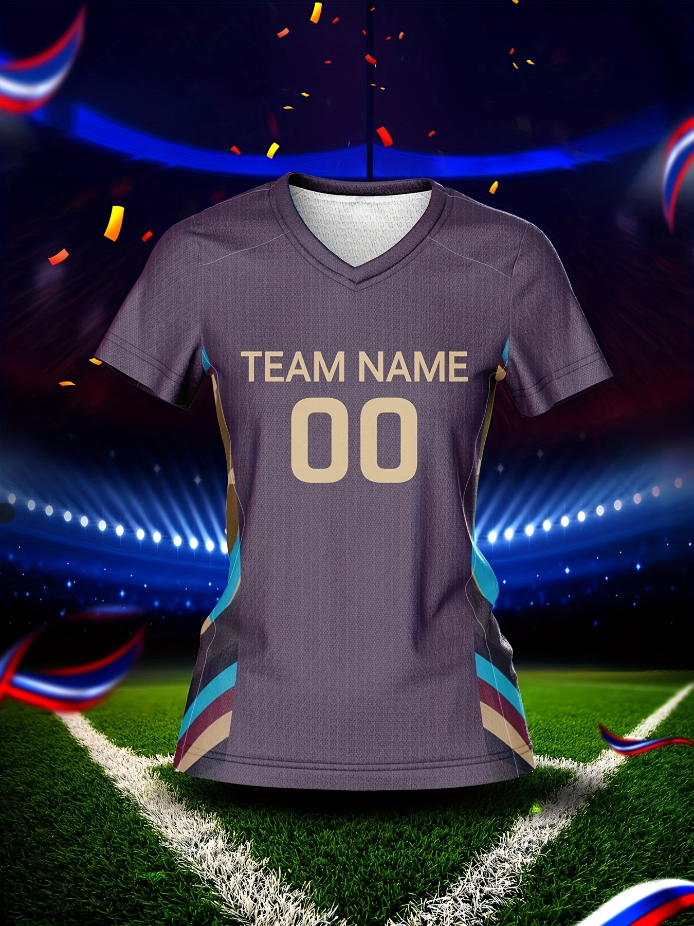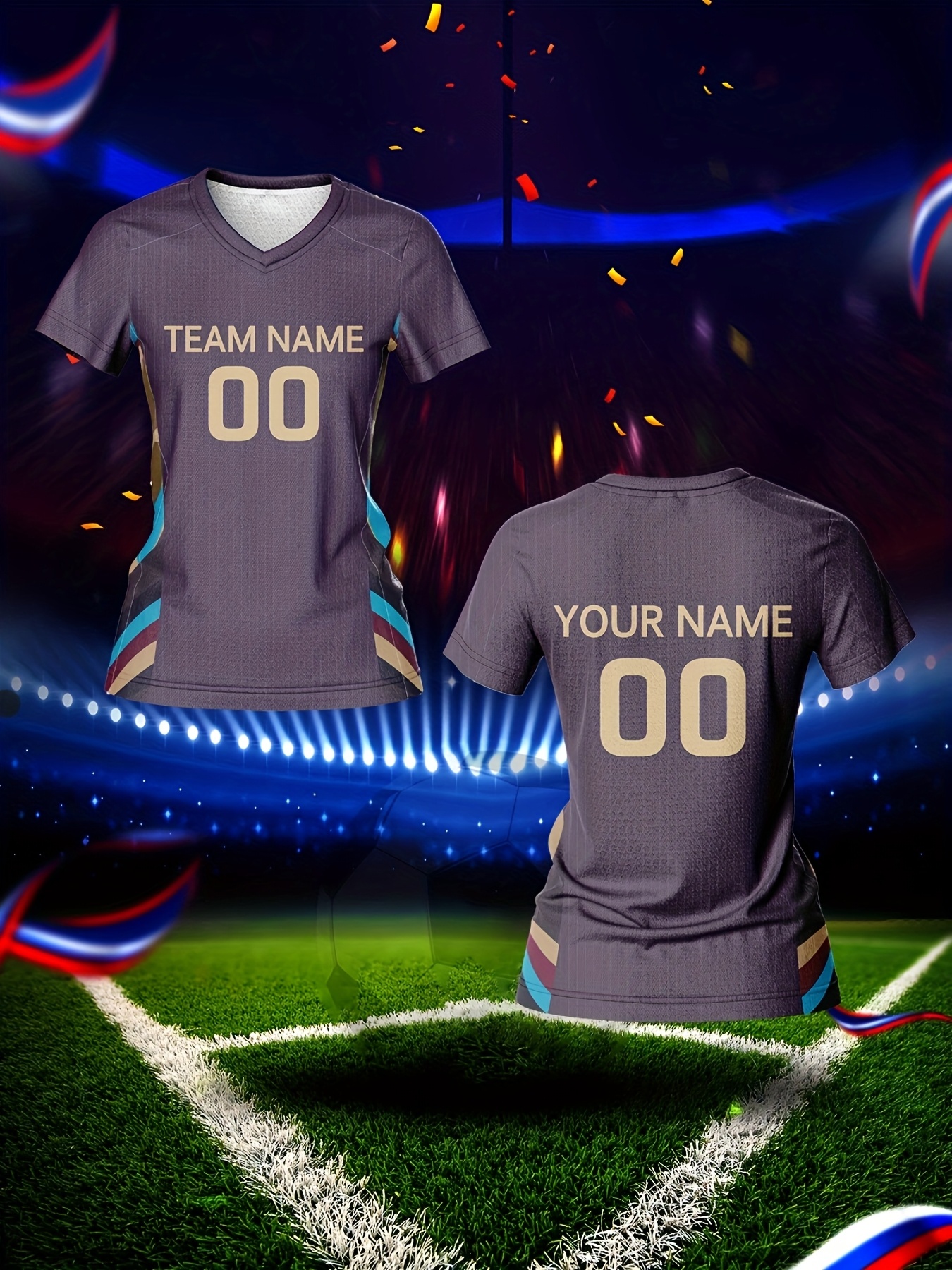 Custom Name and Number Women'S V-Neck Football Jersey, Team Training Sportswear, Comfortable Breathable, Quick-Drying, Daily Casual, Polyester, Slight Stretch, All Over Print, Regular Length, Spring/Summer/Fall, Knit Fabric, 210 g/m²