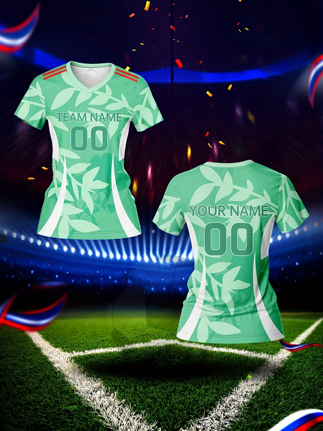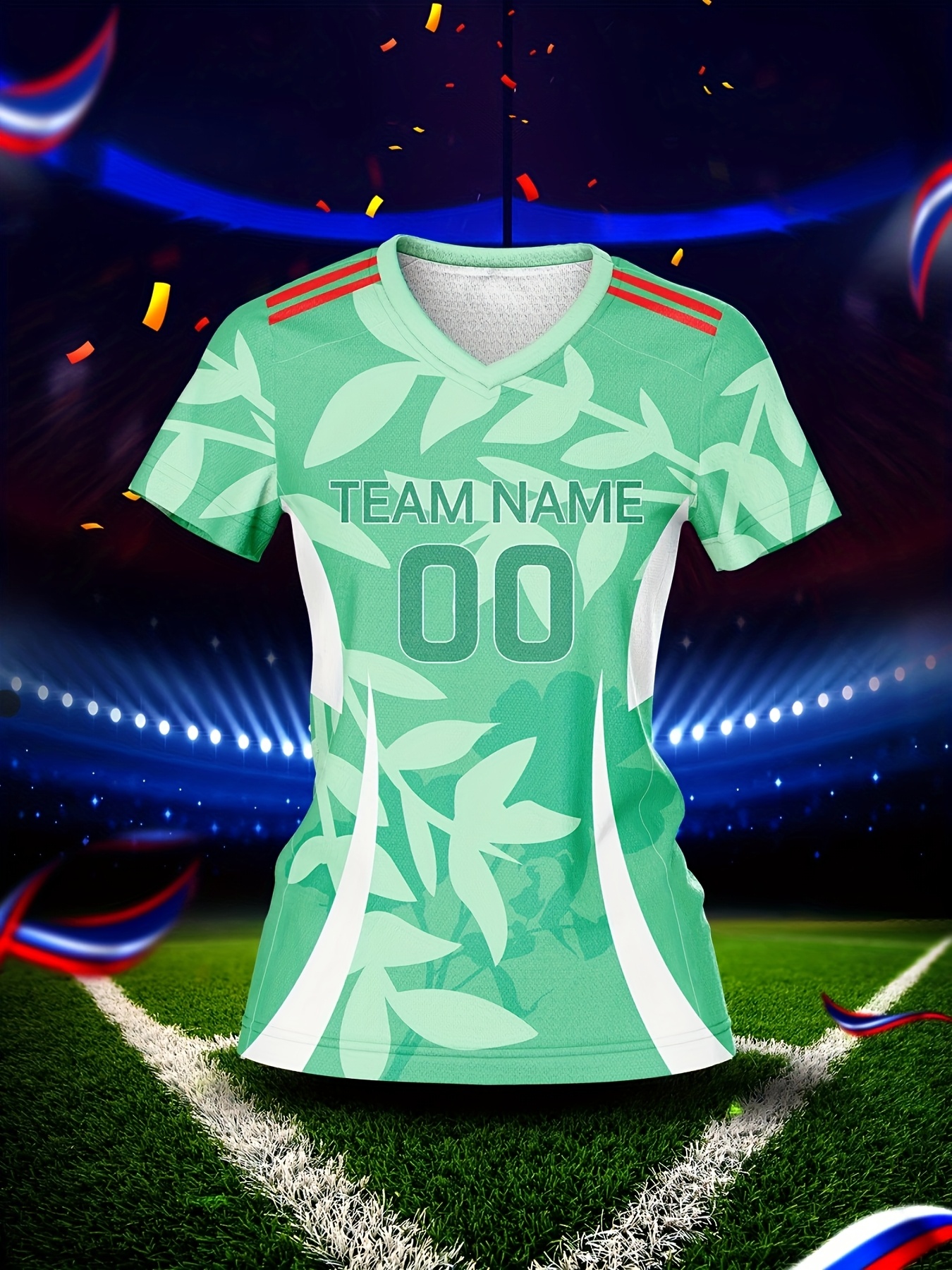 Customized Women'S V-Neck Football Jersey, Polyester 100%, Quick-Dry Knit Fabric, All Over Print, Regular Length, Slight Stretch, Breathable for Training & Fitness, Spring/Summer/Fall Sports Top