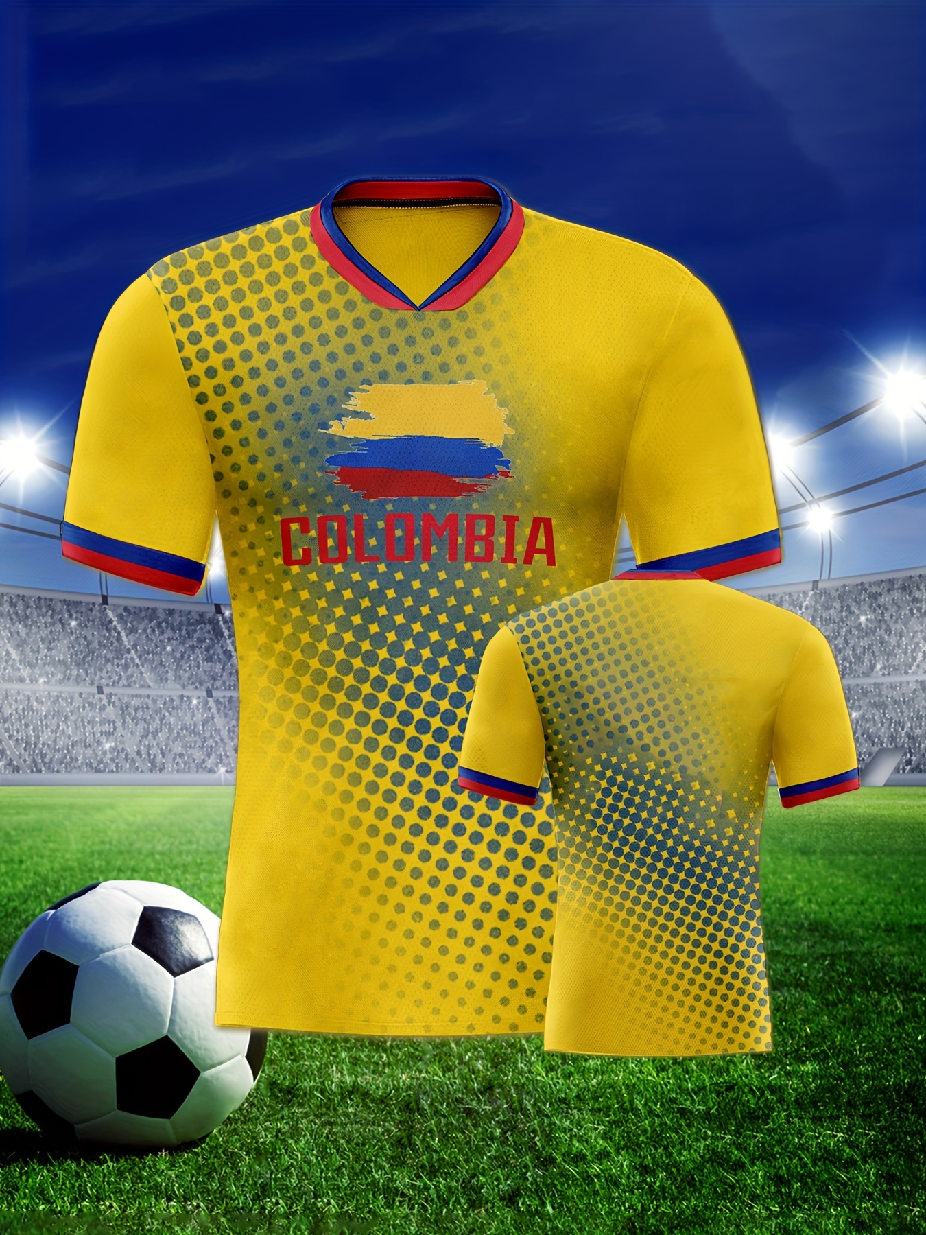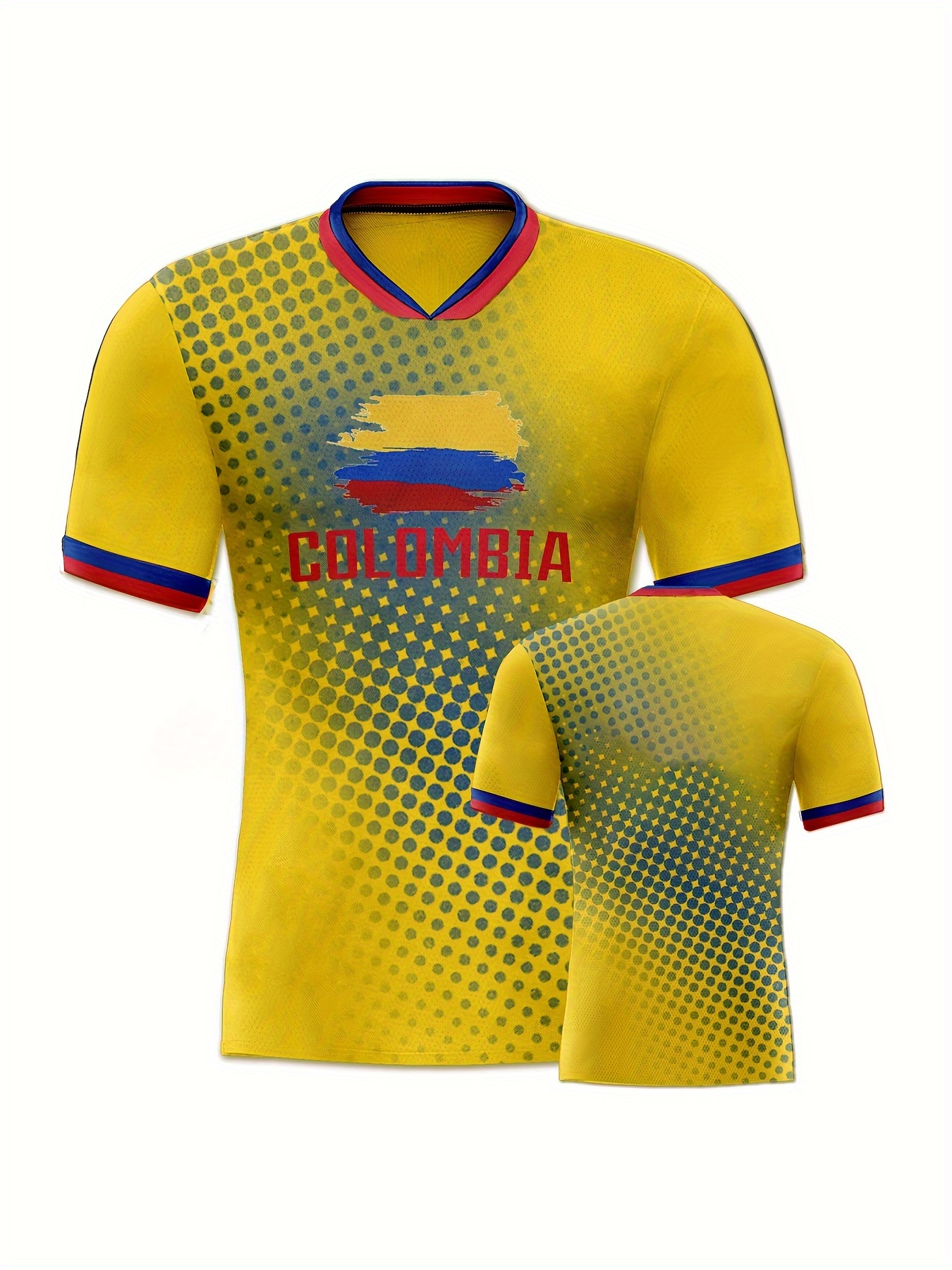 Women's Large Size Professional Sports Fabric Creative Pattern Print Colombia Home Soccer Jersey T-shirt, Soccer Jersey Flag Uniforms Shirts Breathable And Lightweight, Moisture-Wicking, As Gifts For Sports Fans