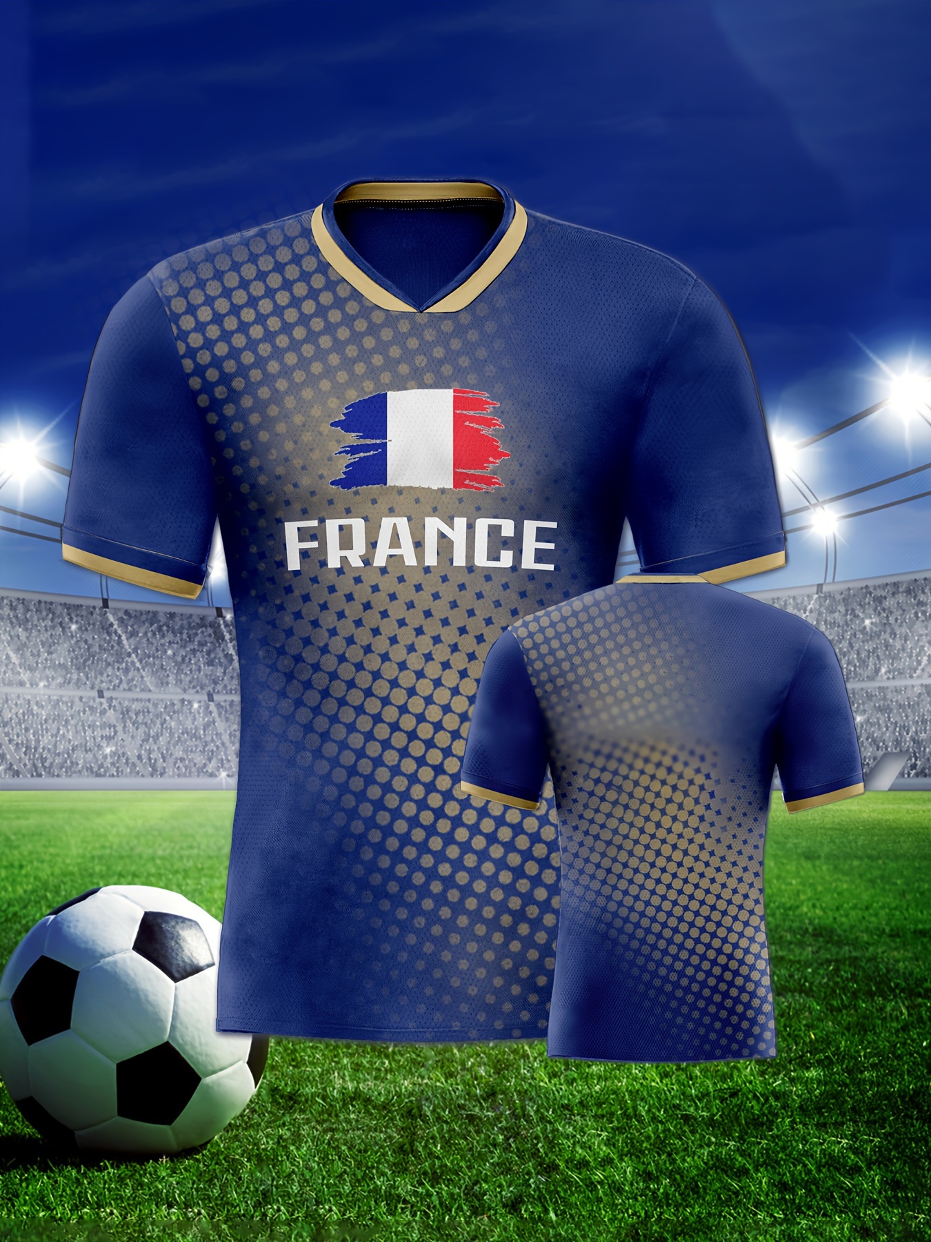 Women's Plus Size France Soccer Jersey - V-Neck, Short Sleeve, Breathable & Lightweight Polyester Sports Tee with French Flag Design, Moisture-Wicking, Perfect for Fans & Players, Soccer Accessories