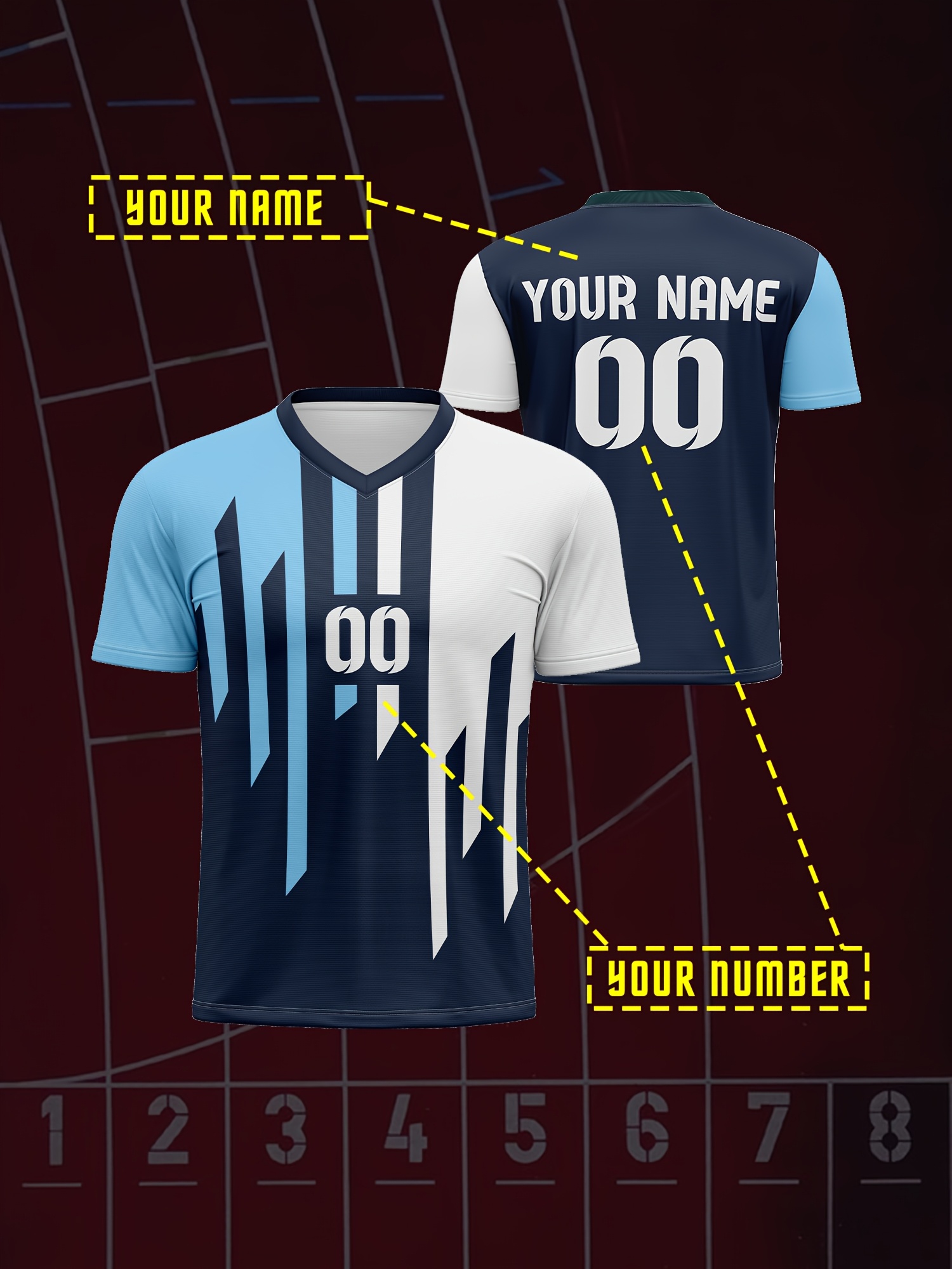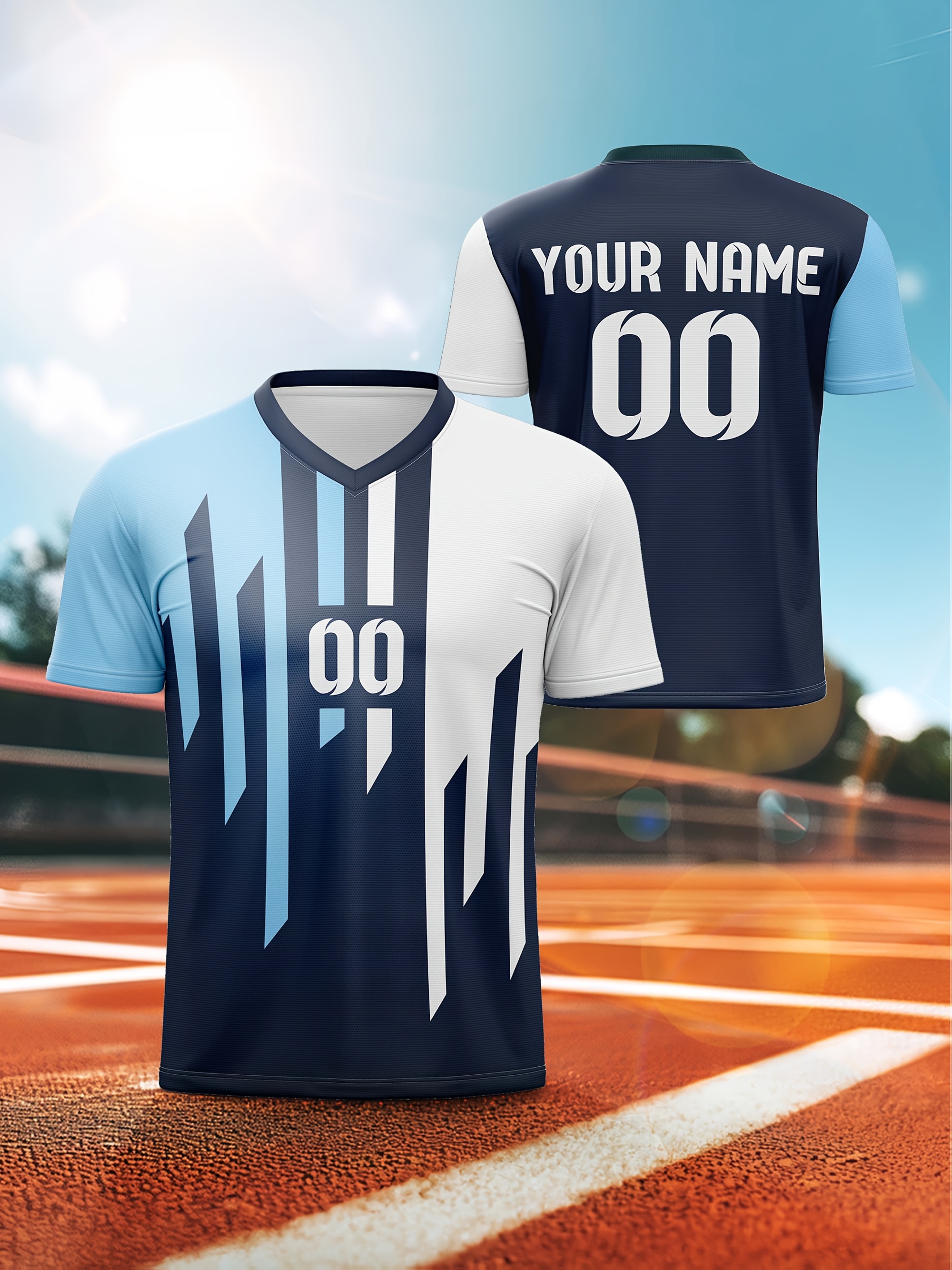 1pc Customizable Kids Soccer Jersey - V-Neck Polyester Football Top with Personalized Name & Number, Medium Stretch, All Over Print, Casual Sports Style for Boys & Girls, Perfect for Training, Beach, Weekend & Birthday Occasions