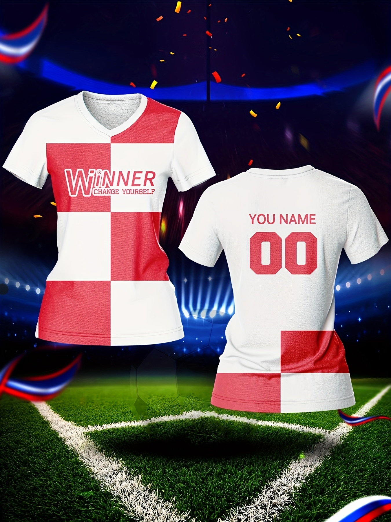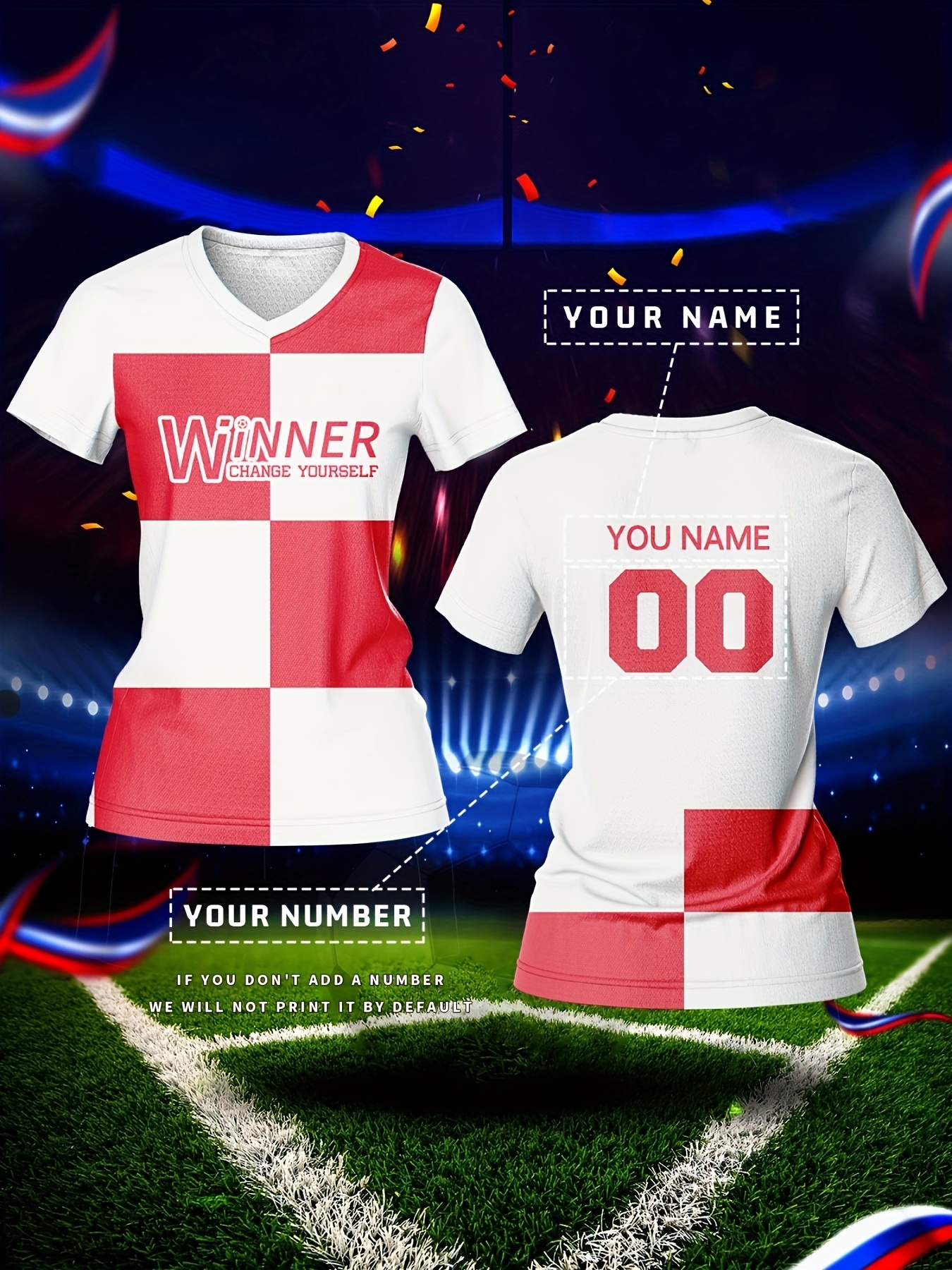 Customizable Women's V-Neck Soccer Jersey - Personal Name & Number, Breathable Polyester, Quick-Dry Sports Top for Team Training & Casual Wear, Sports Training Top | Customizable Soccer Shirt | Smooth Fabric Shirt