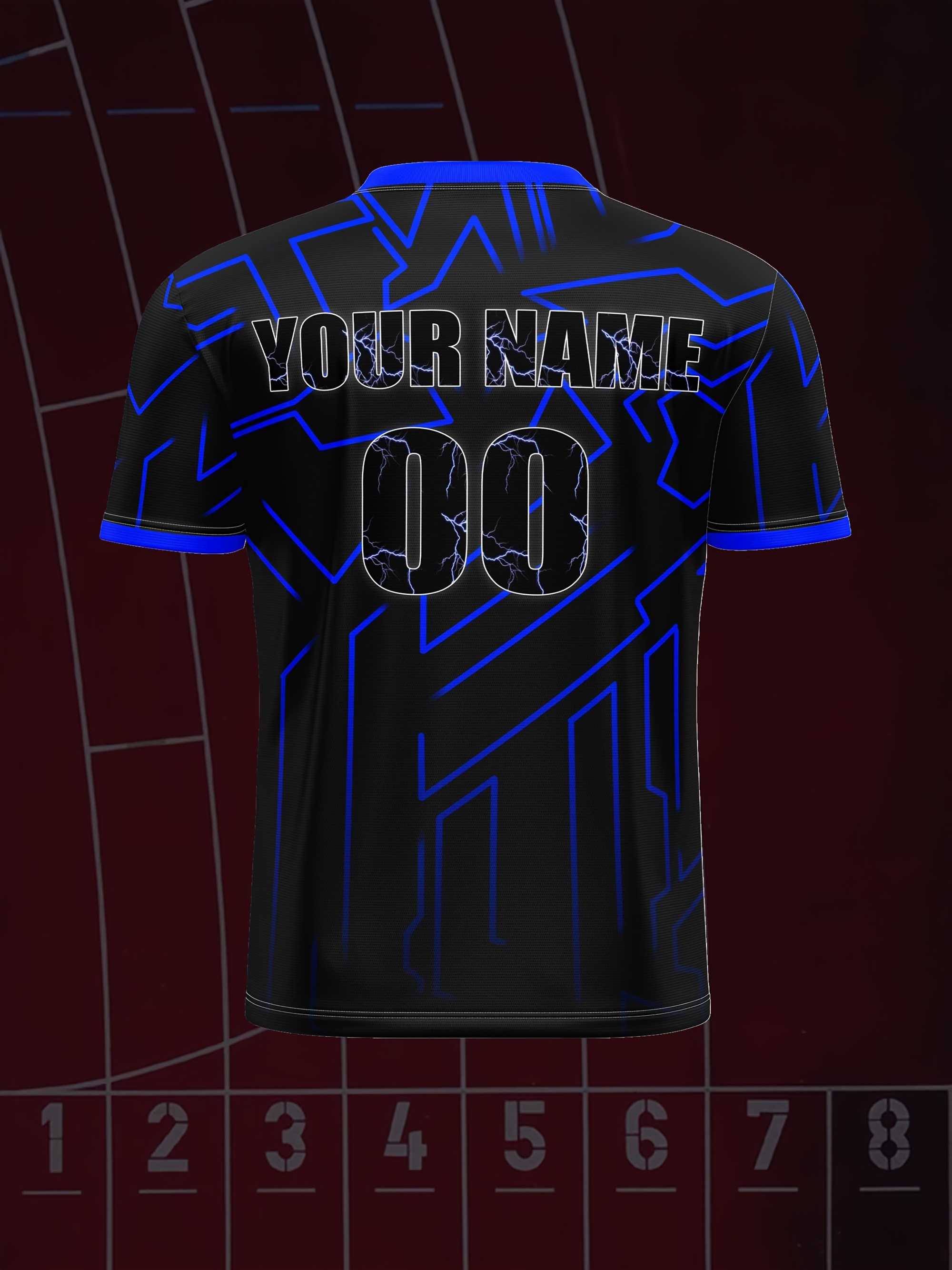 Customizable Youngsters' Soccer Jersey - V-Neck, Personalized Name & Number, Comfortable Polyester Sports Top in Black with Blue Accents for Boys & Girls - Ideal for Outdoor Activities & Training