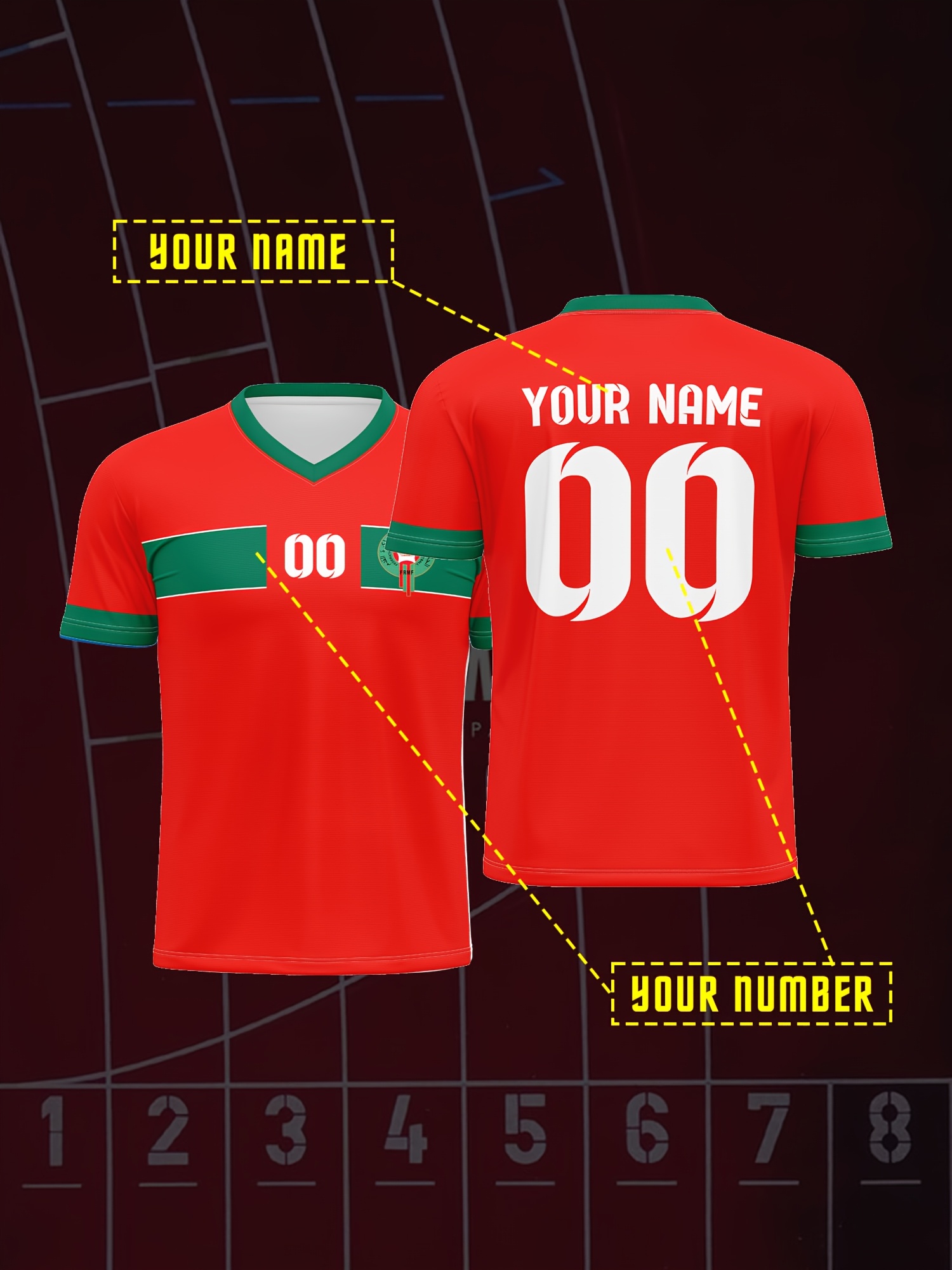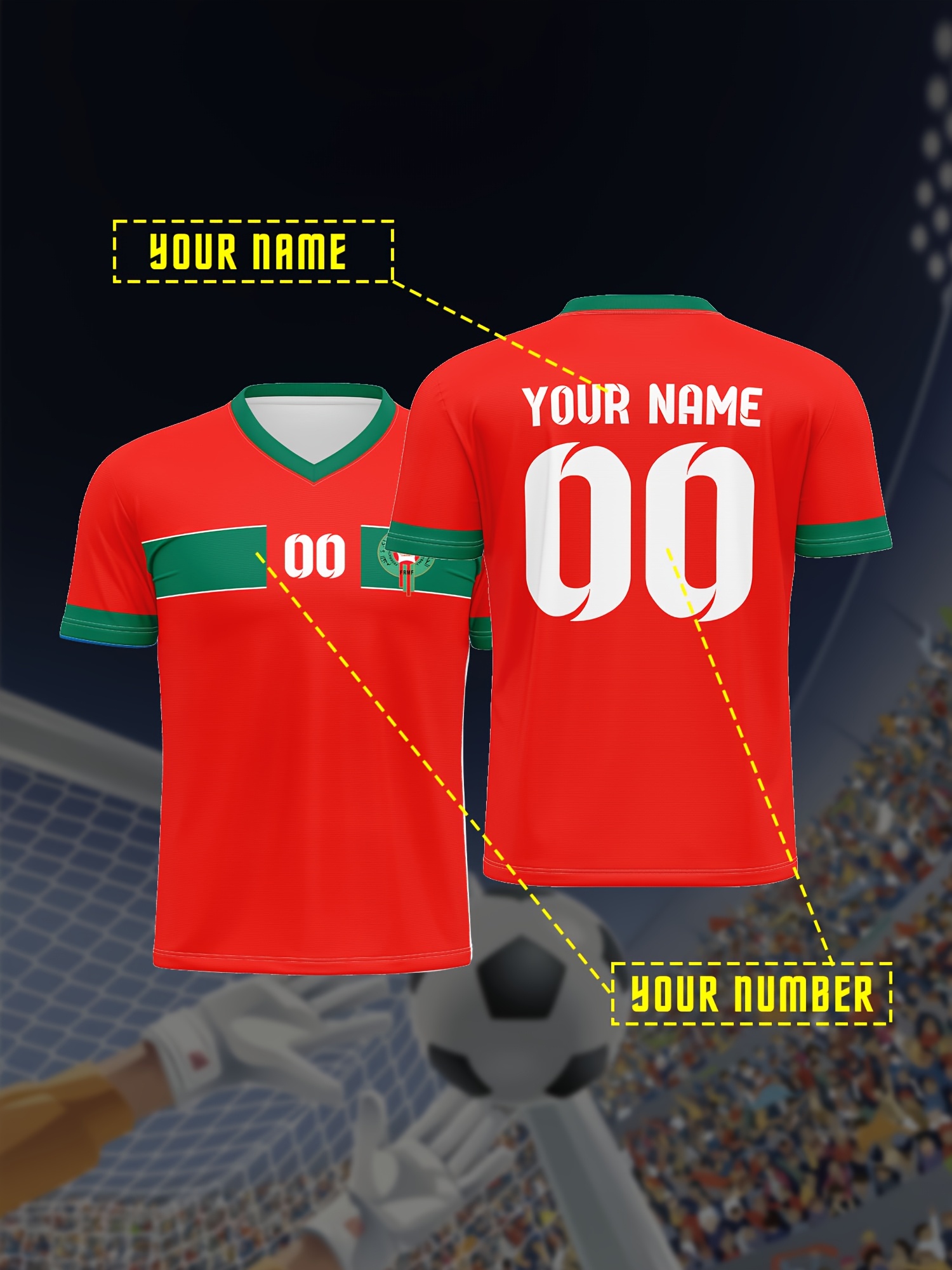 Customized Name And Number V-neck Football Jersey, Polyester Medium Stretch All Over Print Sports Shirt for Boys And Girls, Preppy Casual Street Style