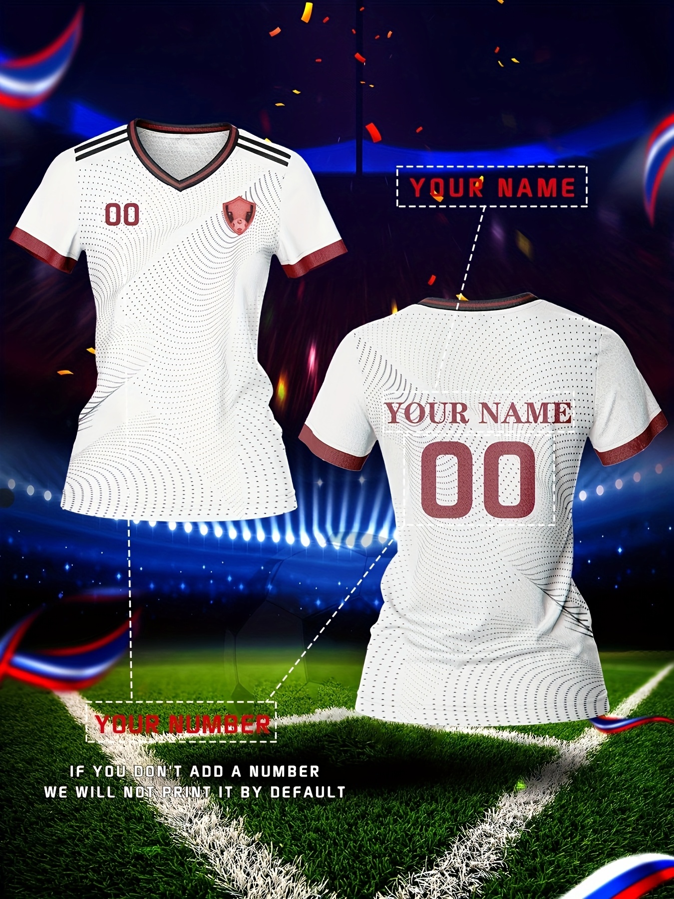Customized Name & Number Women's V-Neck Football Jersey - Breathable Quick-Dry Moisture-Wicking Fabric, Team Training & Casual Wear with All-Over Print Design, Regular Fit for Spring Summer Fall, Personalized Football Jersey, Durable Sports Apparel