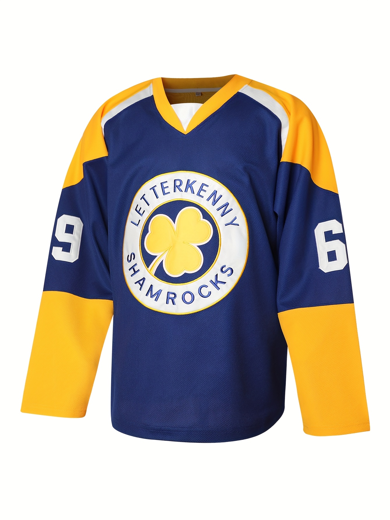 Letterkenny Shamrocks Blue Hockey Jersey #69 Shoresy - Retro V-Neck Design, Breathable Polyester, Long Sleeves, Machine Washable, Perfect for Casual Wear, Parties, and Sports, Hockey Stocking Stuffers
