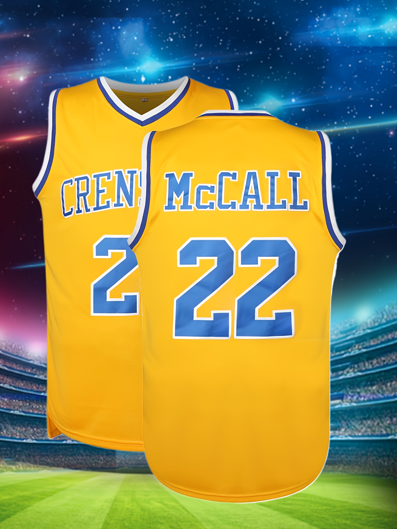 Men's #22 Embroidered Basketball Jersey - 100% Polyester, V-Neck, Sleeveless - Perfect for Training & Streetwear, Spring/Summer/Fall, American Basketball, Yellow