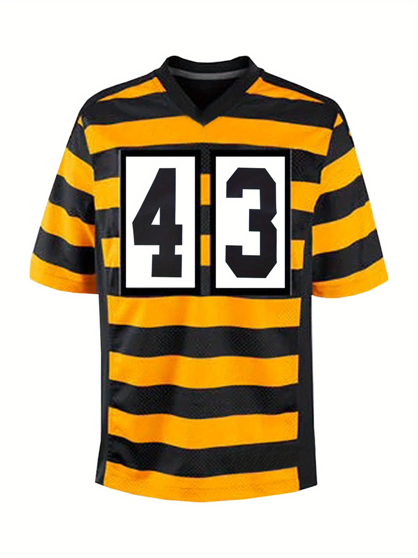 Men's 43 Black and yellow color blocking Embroidery Sport Jersey : V-neck short sleeves Breathable Sports Uniform For Training Competition
