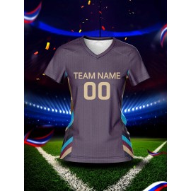 Custom Women's V-Neck Soccer Jersey - Personalized Name & Number, Breathable Quick-Dry Fabric, Team Training Fitness Casual Wear, Retro Street Futuristic Styles, Spring Summer Fall Sports Apparel, Soccer Accessories
