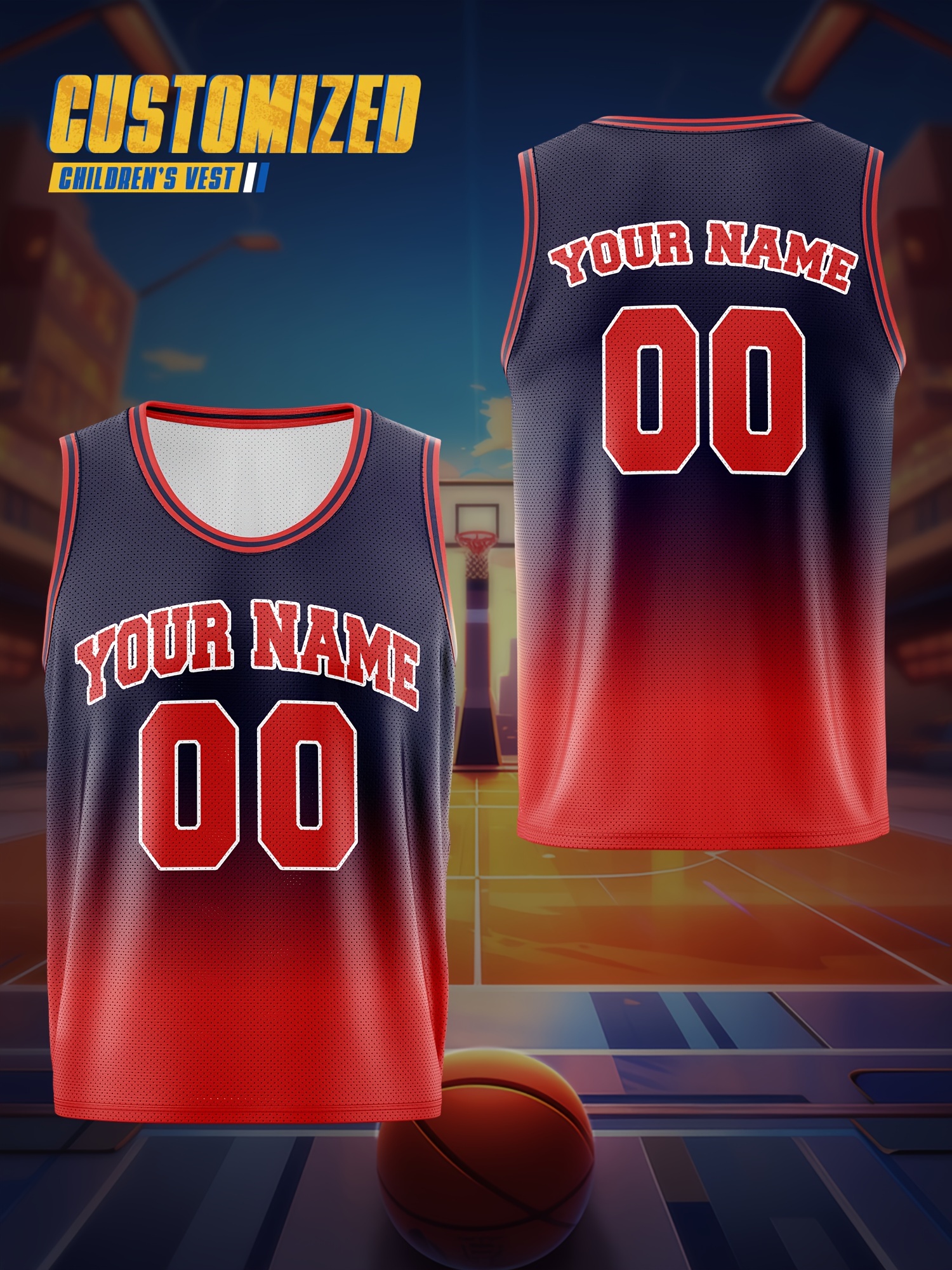 Youngsters' Customizable Basketball Vest - Your Name & Number | Navy Blue with Red Accents, Breathable & Comfortable Polyester, Ideal for Sports Training & Outdoor Fun, Machine Washable, Perfect for Outdoor